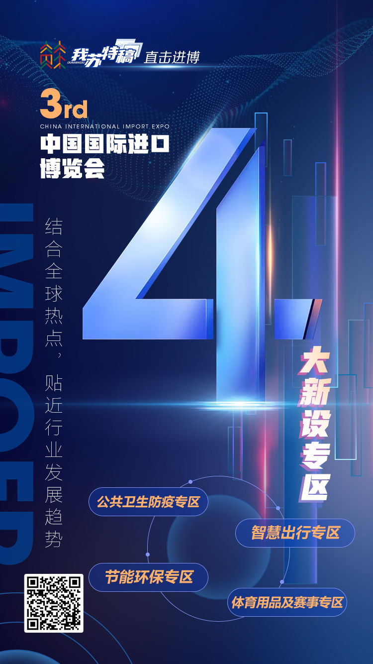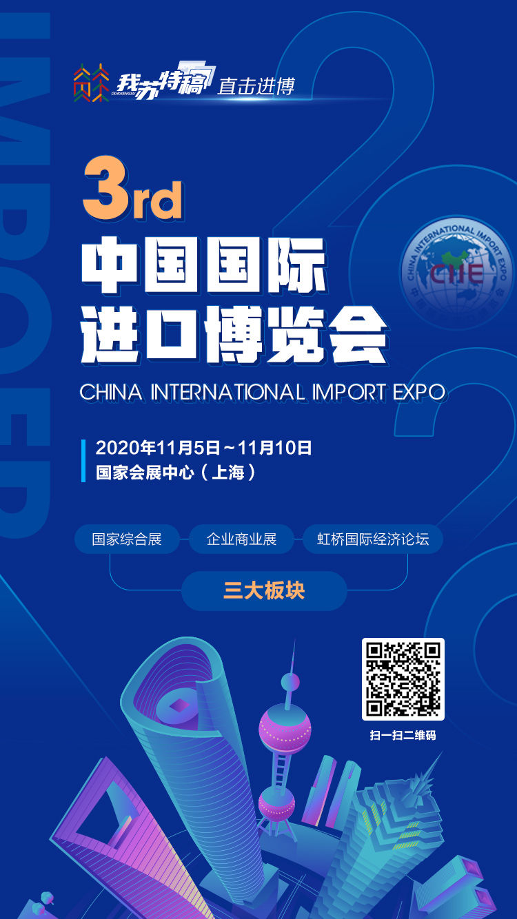 我苏网讯 今天(11月4日),第三届中国国际进口博览会将在上海开幕。全球疫情下,今年的进博会究竟有何不同?“3个更加”、新增“4大专区”、企业商业展“6大展区”!我苏通过几张海报,带你提前尝鲜!