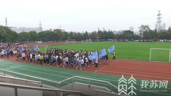 早上8点,无锡市市北高中一下子热闹了起来,全校44个班级2200多名学生集结田径场。随着跑操音乐的响起,各班方阵举着班旗跑步前进。