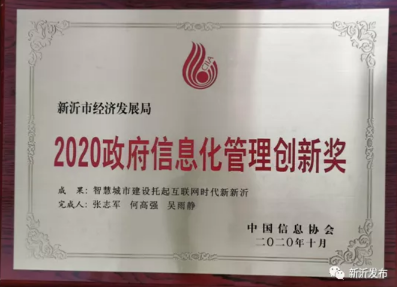 日前,从北京召开的2020政府信息化大会上传来喜讯,徐州新沂市喜获中国信息协会授予的“2020政府信息化管理创新奖”,《智慧城市建设托起互联网时代新新沂》成果案例入选年度优秀案例。
