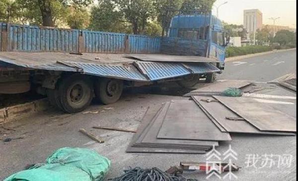 11月3日5时55分,润州交警大队接到群众报警,称在京江路镇江船厂附近一辆货车撞向路牙,车上货物散落。润州交警大队事故中队接到报警后立即赶到现场进行处置。