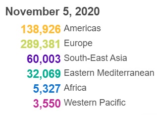 根据世卫组织最新实时统计数据,截至欧洲中部时间11月5日16时19分(北京时间11月5日23时19分),全球累计新冠肺炎确诊病例47930397例,累计死亡病例1221781例。