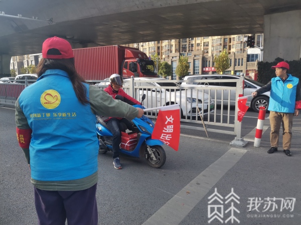 我苏网讯 “师傅,您慢点骑,一定要把头盔戴上。”在镇江新区丁卯街道吾悦广场路口,两名身穿蓝色马甲的志愿者正在维持交通秩序。善意的提醒,暖心的微笑,让路过的非机动车驾驶员纷纷放慢车速,自觉地遵守交通规则。从早上6点,到晚上7点,除了短暂的吃饭时间,他们要在路口执勤超过12小时。