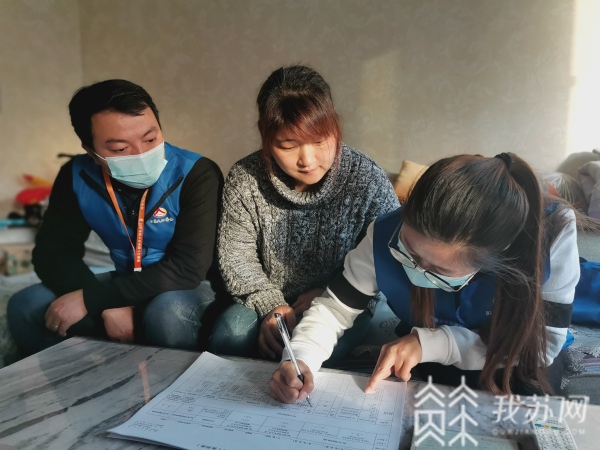 在镇江新区沃德花园许女士家中,志愿者翟俊滨和张蓓戴着口罩,换上鞋套,开始人口普查。“您家几口人?”“房子多大面积?” 张蓓对照户口本录入许女士的家庭信息。二十多分钟后,各种普查问题询问完成。两人离开前,专门把自己胸前的工作牌拿了出来,“最近有很多骗子也在假装人口普查员,你看,真的普查员都有这样的工作证,如果没有不要相信!”因为普查工作的特性,晚上六点以后以及双休日,就成了他们最紧张忙碌的时候。