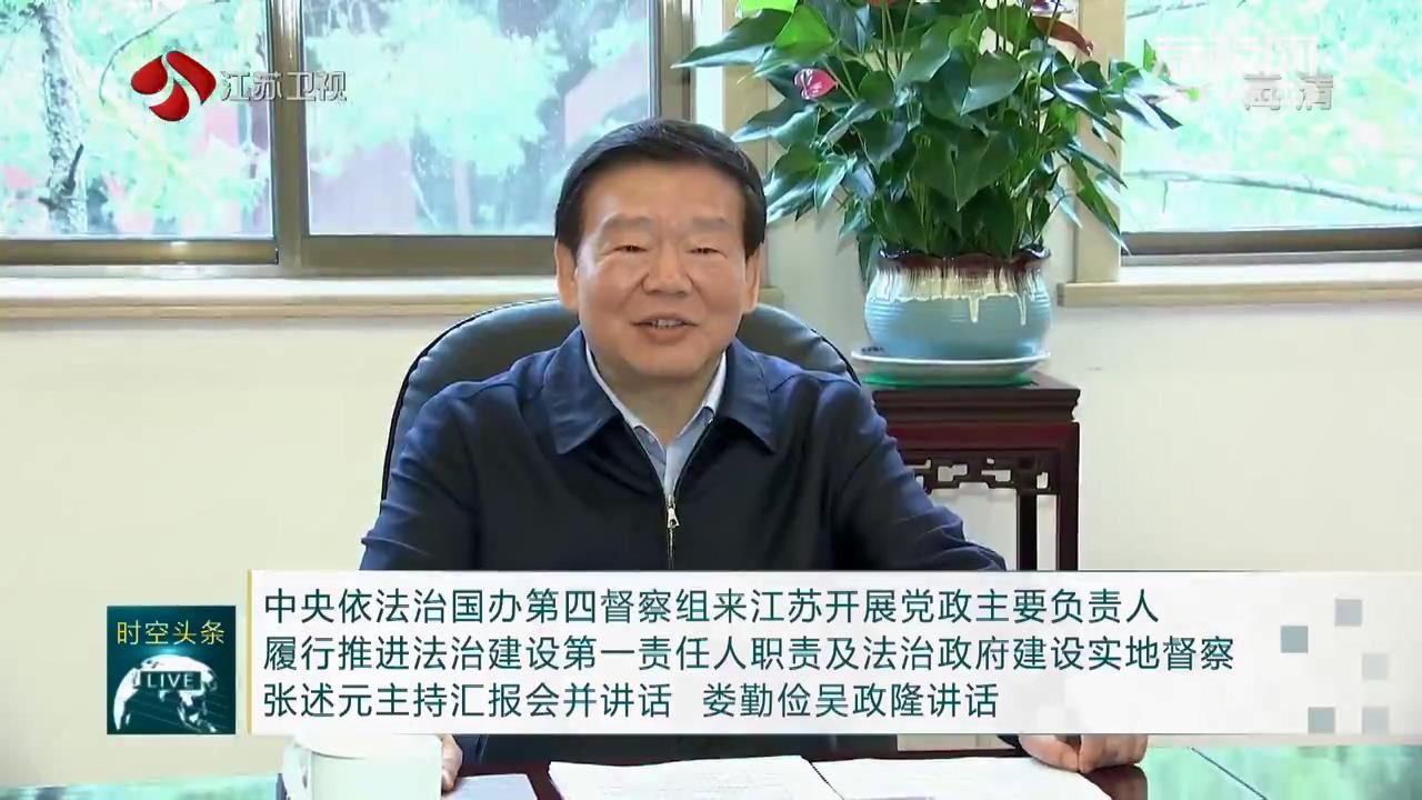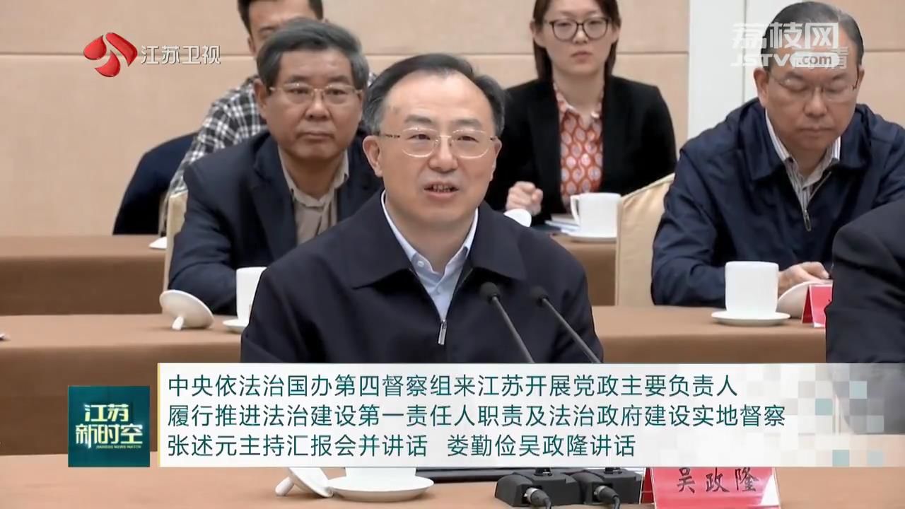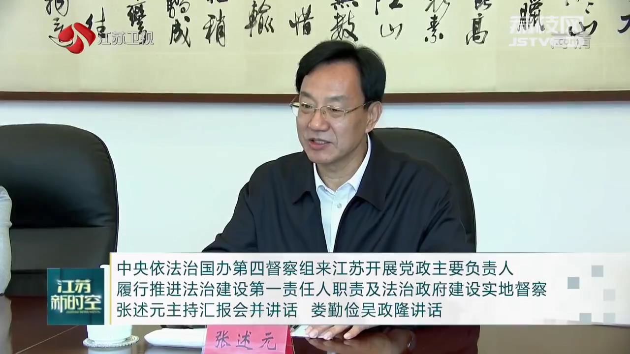 11月4日,中央全面依法治国委员会办公室第四督察组组长张述元率队来江苏开展党政主要负责人履行推进法治建设第一责任人职责及法治政府建设实地督察。11月4日下午在南京举行工作汇报会,张述元出席并讲话。省委书记、省人大常委会主任娄勤俭与督察组座谈。省委副书记、省长吴政隆代表省委省政府作专题汇报,省委副书记任振鹤出席工作汇报会。