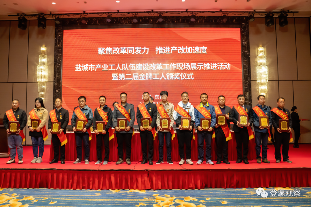 11月5日,由盐城市总工会、市人社局、市科技局、市工信局联合开展的第二届盐城“金牌工人”评选揭晓,15名优秀工人喜摘“金牌”。