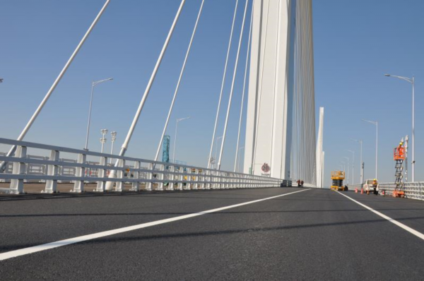 备受关注的南京长江五桥主桥和隧道部分的主体工程建设已完工,桥面、隧道的沥青铺装、照明设备已完成。