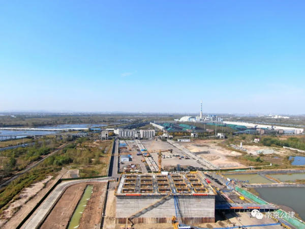 继10月27日北主塔钻孔桩顺利浇注完成后,11月1日,仙新路长江大桥北锚碇开始第一次排水下沉施工。