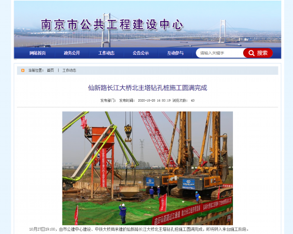 仙新路长江大桥是南京市公共工程建设中心在建的五条过江通道之一,其跨江大桥为主跨1760米的双塔单跨悬索桥。