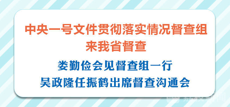 荔枝新闻讯 按照中央农村工作领导小组统一部署,11月2日至7日,住房和城乡建设部副部长倪虹率2020年中央一号文件贯彻落实情况第11督查组来我省开展督查。省委书记娄勤俭会见督查组一行。省委副书记、省长吴政隆出席督查沟通会,省委副书记任振鹤汇报我省贯彻落实中央一号文件情况。