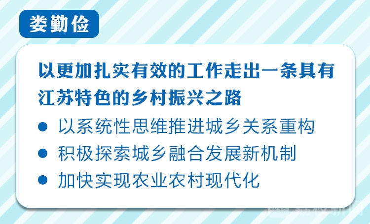娄勤俭代表省委、省政府感谢督查组对我省“三农”工作的关心支持帮助。在介绍今年我省疫情防控、防汛抗洪、恢复经济发展等方面工作后,娄勤俭说,江苏既是工业大省也是农业大省、粮食主产省,近年来我们坚持以习近平新时代中国特色社会主义思想为指导,深入贯彻落实习近平总书记关于“三农”工作重要论述和中央部署要求,以实施乡村振兴战略为总抓手,按照“四化”同步理念,推动农业农村高质量发展。今年以来我们认真落实中央一号文件部署安排,巩固提升脱贫攻坚成果,推进全面小康补短板强弱项,切实抓好重要农产品稳产保供,大力推动农民就业创业,扎实推进长江禁捕、苏北农房改善、农村人居环境整治、美丽田园乡村建设等重点工作,农民群众的获得感幸福感进一步增强。娄勤俭表示,面向“十四五”发展,我们将按照“走在前列”目标定位,坚持“三农”工作重中之重不动摇,更好地把握社会发展规律,以系统性思维推进城乡关系重构,积极探索城乡融合发展新机制,加快实现农业农村现代化,以更加扎实有效的工作走出一条具有江苏特色的乡村振兴之路。