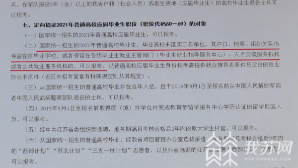 招录公告中明确,除了2021年应届毕业生,2020年普通高校毕业生,如果至今没有落实工作单位的,也可以报考定向岗位。但专家提醒,这些考生在选择定向岗位时要谨慎,最好报名前电话咨询招录单位,确认自己是否符合报名资格。