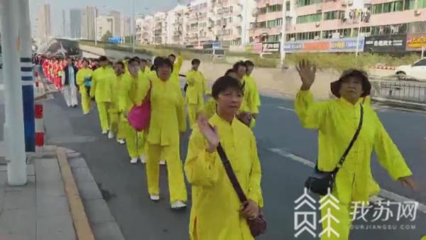 摆开双臂迈开腿,快乐健步走起来!今天(8日)一大早,全国老年人健步走大联动江苏分会场暨江苏省老年人体育节闭幕式,在南通城东街道友谊社区举行。南通市区十多个俱乐部和团队的老年体育爱好者们,表演了精彩的体育运动节目。1000多名老人还组成方阵健步走,大伙儿喊着口号,步履轻盈,展现了老年人的风采。