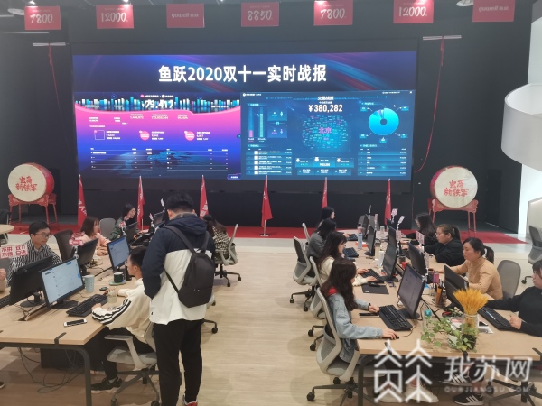 “亲,您要的货物充足,不用着急哦。”“买它,买它,再过两天就恢复原价啦。”几十名工作人员正在紧张地忙碌着,房间正中间的大屏上数字不停翻动,显示着双十一实时“战报”。