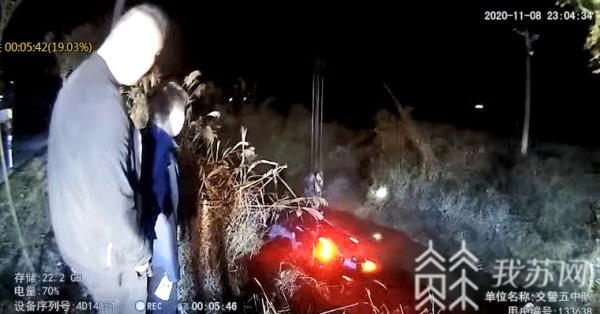 2020年11月8日晚22时许,沭阳交警五中队民警沃恒岩接到报警。报警人吕某自称自己为了避让三轮车,不慎将自己的车开进了沟里。