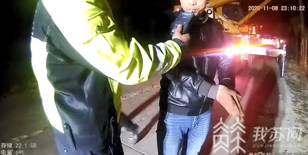 “那你肯定酒驾了!来检测一下!刚刚是不是因为想起来自己酒驾想撤警?”民警边拿出酒精呼气检测仪边说。