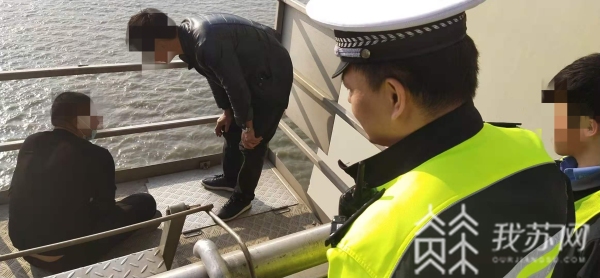 民警到达现场后,发现一名男子坐在桥面维修平台上,与江面只隔着一层玻璃围栏。现场处置民警立即控制局面,安抚他的情绪。十多分钟后,该男子终于被解救到安全地带,并带回检查站联系家人。