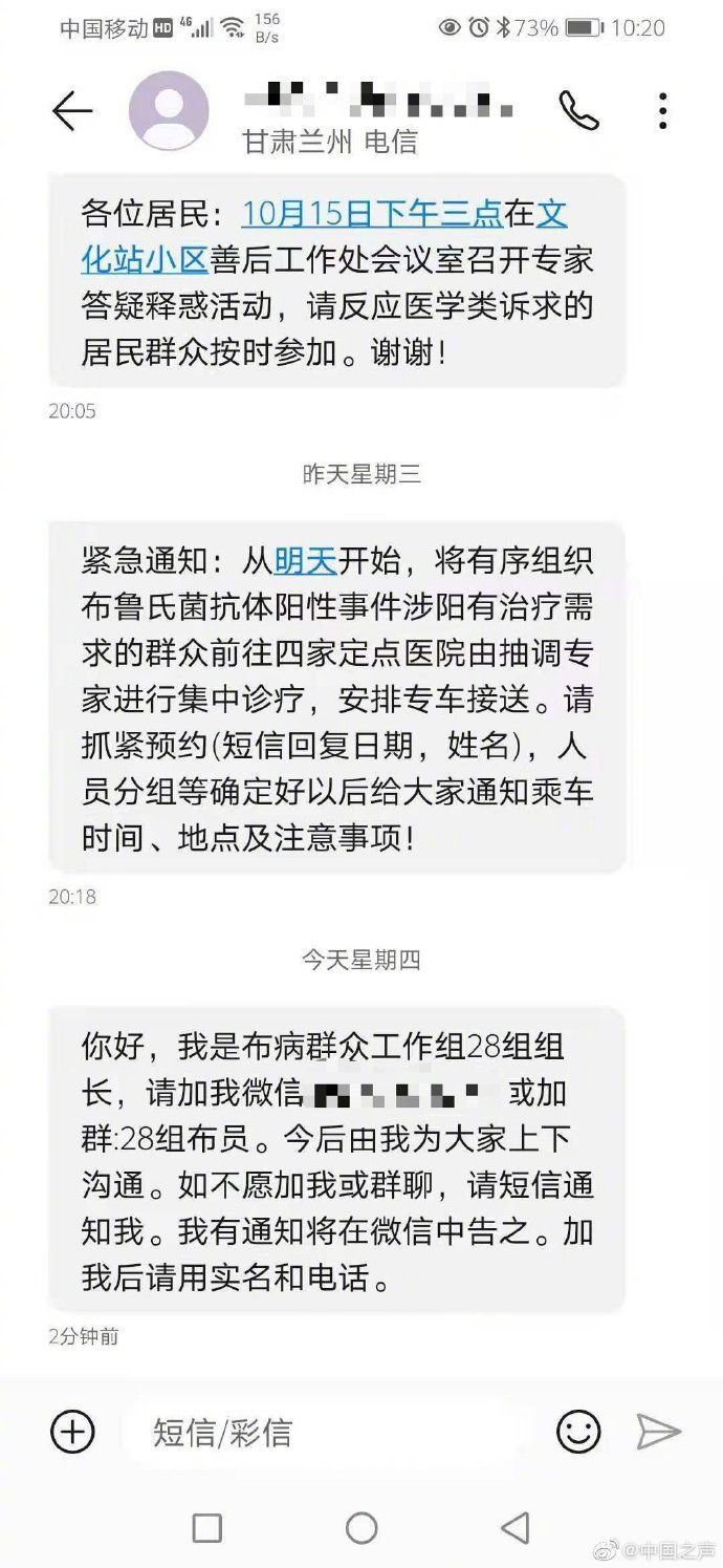 报道播出后,国家卫生健康委再次派出由中国疾控中心传防所、中国疾控中心鼠布基地、北京地坛医院、内蒙古医科大学附属医院等权威机构专家组成的专家组,前往兰州指导此次事件检测治疗、医疗救治、健康评估等工作。专家组进一步修订完善了兰州兽研所布菌抗体阳性者检查治疗方案,形成了国家版检查治疗方案,对抗体阳性者定义、诊断治疗、健康评估等问题达成了共识。