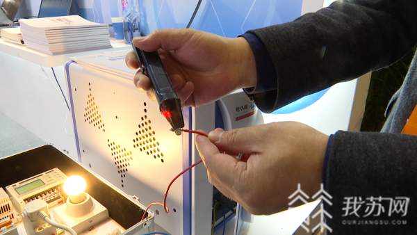 参展单位工作人员介绍:“把室电引入装置之后,再输出来进入工作回路,这个电相对来说就是安全的,一个成年男子电流10毫安以下,基本不会伤害他,也没什么感觉,这个装置在电压不改变的情况下,通过无限放大电阻之后,实际中电流很小很小,达到零点几毫安以下。”