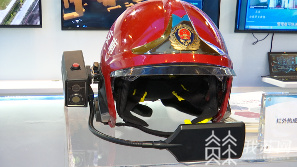 这款智能一体化头盔,在普通头盔的基础上,加入了热成像和远程通讯功能,可以帮助消防员第一时间找到起火点。参展单位工作人员说:“特别是火灾现场浓烟滚滚时,没办法进行现场火源辨识,通过热成像仪进行火源点的热成像比对,颜色深的地方,一般来说就是温度比较高的地方,基本上就是着火点。”