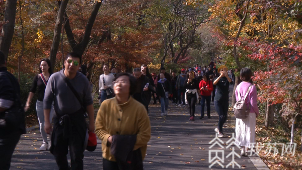 栖霞山工作人员蔡晖告诉记者:“目前,栖霞山已经进入了最佳观赏期,已经有一个层林尽染的景致。比较偏红的树种有鸡爪槭、枫香……再加上高高低低的小灌木,错落有致,非常好看。”