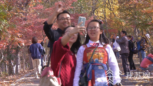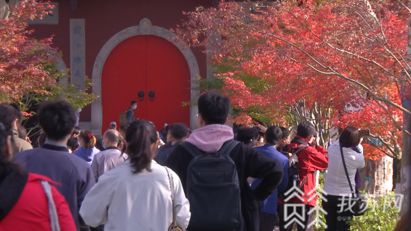栖霞山红叶已经渐入佳境,景区在此也提醒各位游客,错峰出游,文明赏枫,请勿采摘枫叶,美好的栖霞秋色大家共赏!“现在的客流高峰主要集中在周末,早上9点开始到11点,下午1点到3点,都是客流高峰,我们呼吁大家尽量错峰出行,选择周一到周五到景区,有班车在周末总统府发车,也是可以直达景区的,我们呼吁大家绿色出行。”栖霞山工作人员蔡晖提醒。