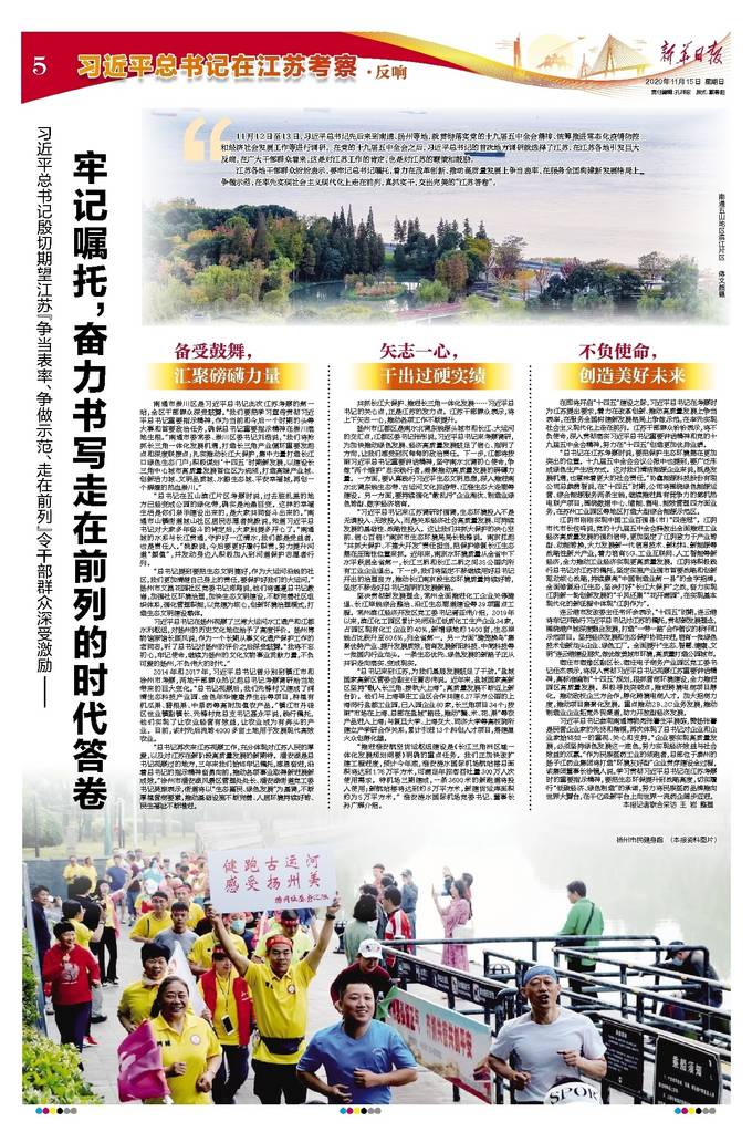 江苏各地干部群众纷纷表示,要牢记总书记嘱托,着力在改革创新、推动高质量发展上争当表率,在服务全国构建新发展格局上争做示范,在率先实现社会主义现代化上走在前列,真抓实干,交出完美的“江苏答卷”。