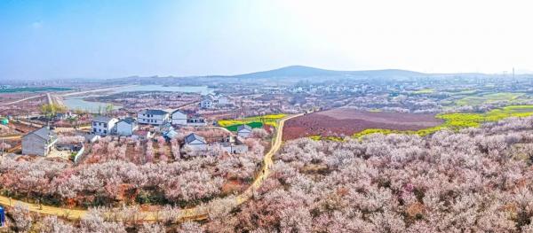 进入江苏徐州经开区徐庄镇山黄村圣人窝自然村,走过弯弯的石桥,路过白墙红瓦的农家小楼,登上观景台眺望远处,湖水蜿蜒,群山起伏,花海成片,农舍掩映,行人点点,自然与人文相融,诗意与情怀碰撞,省级特色田园乡村的美丽画卷,在眼前徐徐展开。
