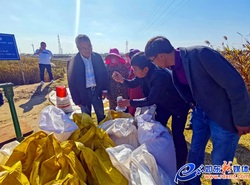 “基地承包单位对耐盐水稻十分看好,计划明年种植150亩耐盐水稻。与此同时,周边省市也有不少种植户与我联系,希望能够来如东承包盐碱地种植耐盐水稻。”於永杰告诉记者,近日,测产专家组对基地最后一批“叁优一号”杂交盐碱地水稻进行机收测产,经过测量、收割、称重、去杂、水分测定等多道工序后,“叁优一号”三块实收小区平均亩产超600公斤。