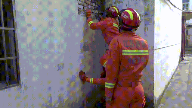 由于大门紧锁无法打开,消防救援人员立即决定搭“人梯”翻墙入院进行救援。在将老爷爷扶起后,消防救援人员发现卫生间里还有一位老奶奶被困,于是赶紧将卫生间的门打开,将老人救出。所幸两位老人并无大碍。
