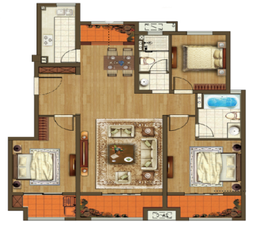 四季阳光121m²户型样板间实景图