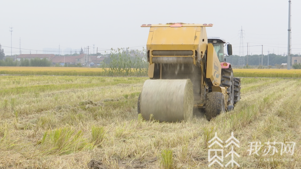 淡金色的稻田里,拖拉机拖着打捆机,把秸秆堆叠成一个个大小一致的“蛋卷儿”,再由抓抱机把秸秆卷码放在田埂上,等待运送到工厂。不方便作业的角落,就把土地翻过来,让秸秆就地还田,增加土壤有机质。
