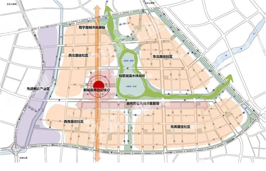 禄口新城中心区为禄口新城的核心区,定位为空港枢纽经济核心区的重要支撑板块,南京现代服务业的主要集聚平台,禄口新城宜居宜游的典范品质地区。中心区规划建设多所学校,包含幼儿园、小学、初中、国际学校,还将建设青少年活动中心、会展中心、综合医院等公共管理和公共服务设施,如意湖将打造成禄口空港新城的滨水中央公园,环湖设置跑步道、自行车道、漫步道。
