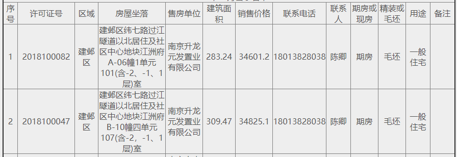 河西有2套退房,均来自于江心洲热盘升龙桃花园著,面积为283㎡、309㎡,对应单价34601、34825元/㎡,含有2层地下室,总价较高。