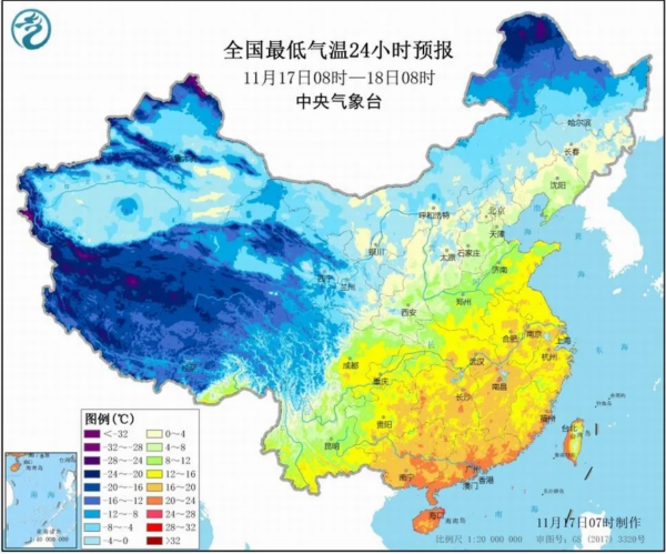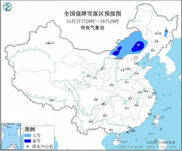 17日下午18时,中央气象台发布暴雪蓝色预警。这是入冬以来范围最广、强度最大的一次雨雪天气过程,也是今年冬天的首个暴雪预警。