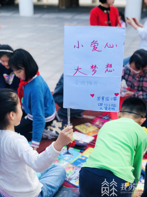 “走一走,看一看,大减价,爱心义卖!”中午12点半,南京市芳草园小学的爱心集市正式“开市”,“小掌柜们”使出了浑身解数招揽顾客,大力推销。操场上支起了充满特色的宣传牌和宣传标语,并摆上了精心挑选的书籍、文具、玩具等物品。