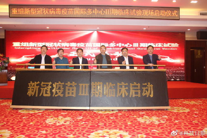 记者从合肥高新区获悉,11月18日,安徽智飞龙科马公司的新冠疫苗在湖南湘潭县启动III期临床试验,也是国内首个启动III期临床试验的重组亚单位疫苗。