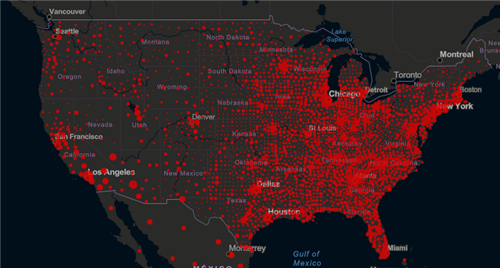 美国疫情分布图(约翰斯·霍普金斯大学)