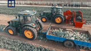 在采收现场,两台120马力拖拉机加载动力无人系统、GPS/北斗双模导航系统等先进智能设备,正在进行露地甘蓝采收作业。在此之前,露地甘蓝的深松、旋耕、起垄、移栽、水肥、植保等关键环节,也都实现了智能无人化作业,从而使露地甘蓝实现全程智能无人化作业。