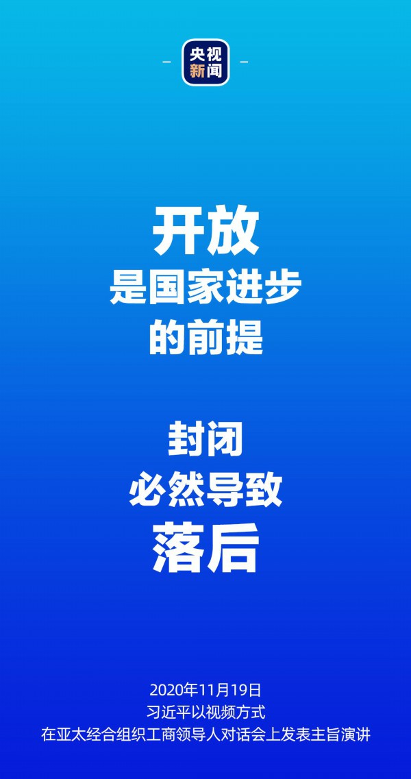 19日,国家主席习近平在北京以视频方式出席亚太经合组织工商领导人对话会并发表主旨演讲。对于亚太区域经济合作和全球治理,习主席给出了怎样的“中国方案”?来看梳理↓