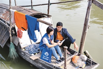 11月5日,在广东省鹤山市,人口普查员走进谷埠水上渔村,为渔民采集、登记、录入人口相关信息。