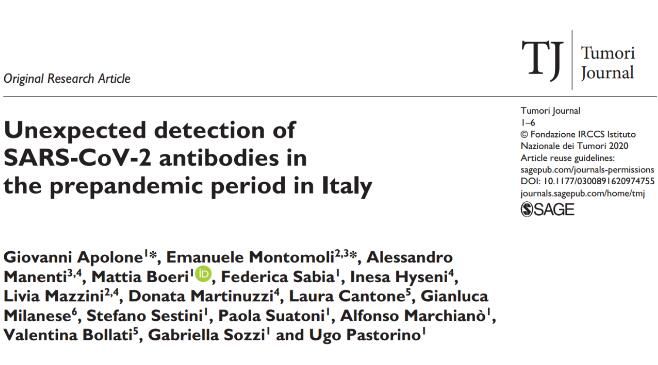 △米兰国家肿瘤研究所等机构论文《意大利疫情大流行前意外检测到的新冠病毒抗体》