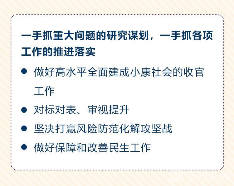 娄勤俭指出,要牢牢把握 “两个百年”历史交汇、“两个五年”承前启后的重大节点,结合五中全会精神的贯彻落实,扎实做好各项工作,不辜负习近平总书记和党中央的重托和厚爱。当前要一手抓重大问题的研究谋划,一手抓各项工作的推进落实,特别是要拿出争当表率、争做示范、走在前列的精神状态,圆满完成今年各项目标任务。要做好高水平全面建成小康社会的收官工作,真正以过硬的质量和水平兑现对人民的庄严承诺。要对照五中全会精神和总书记重要指示要求,对标对表、审视提升,总结好现代化探索的试点经验。要切实维护社会大局稳定,坚决打赢风险防范化解攻坚战,扎实做好疫情防控、安全生产等各方面工作。要做好保障和改善民生工作,更加牢固树立以人民为中心的发展思想,把解决突出民生问题作为江苏开启现代化的重要落点。