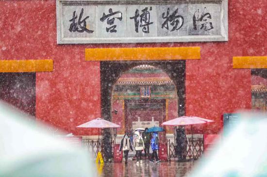 一砖一瓦,红墙白雪琉璃瓦,每一砖都保留着中国的颜色,每一瓦都飘落着雪的白色。