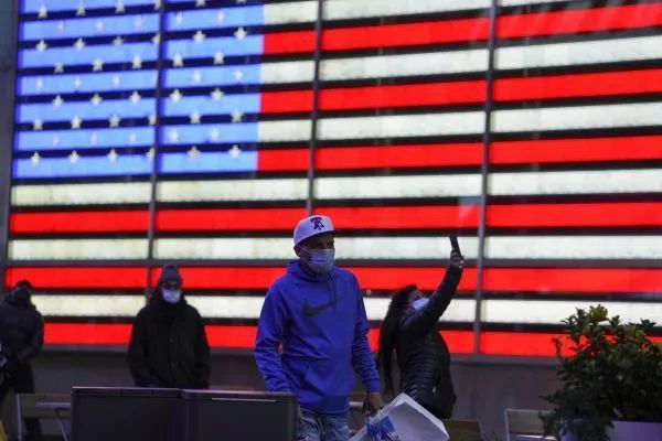 11月18日,行人走在美国纽约时报广场。新华社