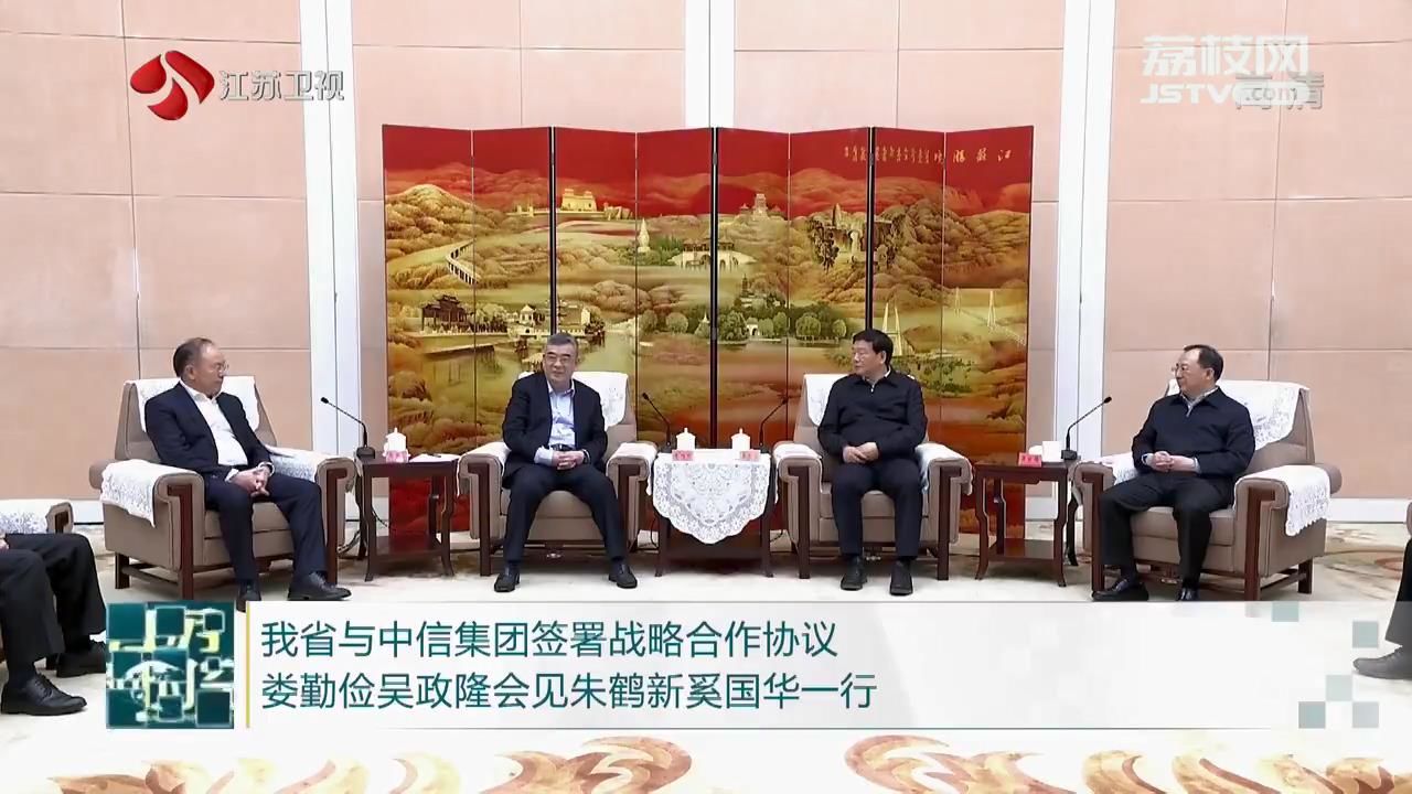 11月20日,江苏省政府与中信集团在宁签署战略合作协议。签约前,省委书记娄勤俭、省长吴政隆会见了中信集团董事长朱鹤新、总经理奚国华一行。