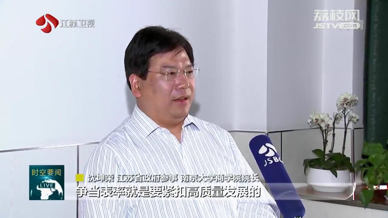 江苏省人民政府参事、南京大学商学院院长沈坤荣说:“争当表率就是要紧扣高质量发展的重点领域,关键环节,更加彻底地进行改革,更高水平地推进创新;争做示范就是针对经济运行当中各种堵点和关键节点来畅通国民经济的双循环的格局,做到高质量的引进来和高水平的走出去;走在前列,要发挥江苏一直以来先行先试,大胆探索的这种精神,来敢于突破,率先实现社会主义现代化。”