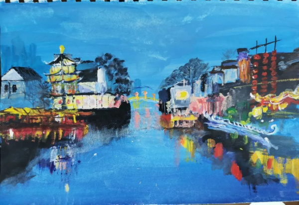 ▲参赛作品《桨声灯影秦淮河》作者:谭添(南师附中仙林学校小学部南邮校区六年级)