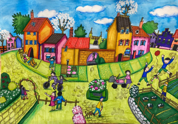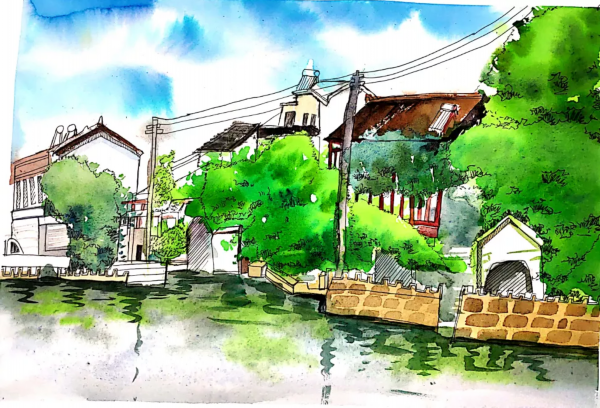 ▲参赛作品《水美不老村》作者:张震(南京实验小学四年级)