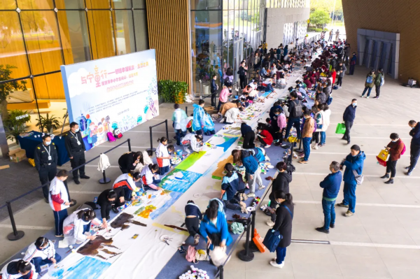 11月21日上午,第二届“与宁童行”南京市中小学生诵读、绘画大赛活动优秀作品巡展在江心洲科创中心正式启动,现场展出近百幅作品,吸引市民观赏。活动中,百名学生现场创作《大美南京》99米画卷,为“创新名城、美丽古都”南京之美点赞。