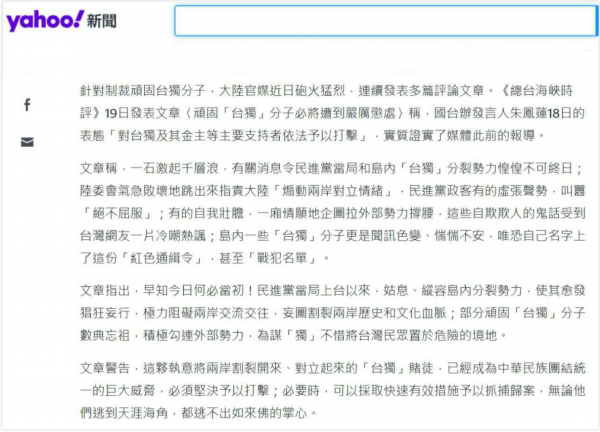 △台湾雅虎新闻报道截图